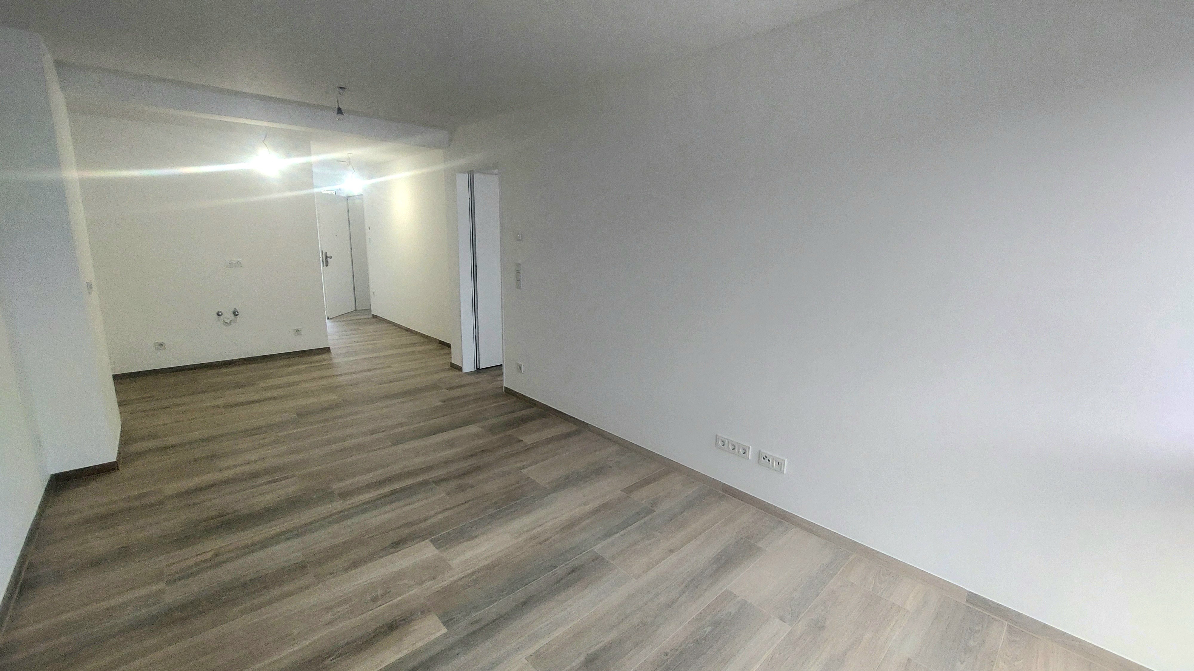 Die Wohnung besteht aus einem Schlafzimmer und einem weiteren Zimmer, das als Wohnzimmer mit offenem Küchenbereich genutzt werden kann. Die offene Gestaltung des Wohnbereichs schafft eine luftige Atmosphäre und lässt viel Tageslicht herein. Die Terrasse bietet einen schönen Blick auf die Umgebung.