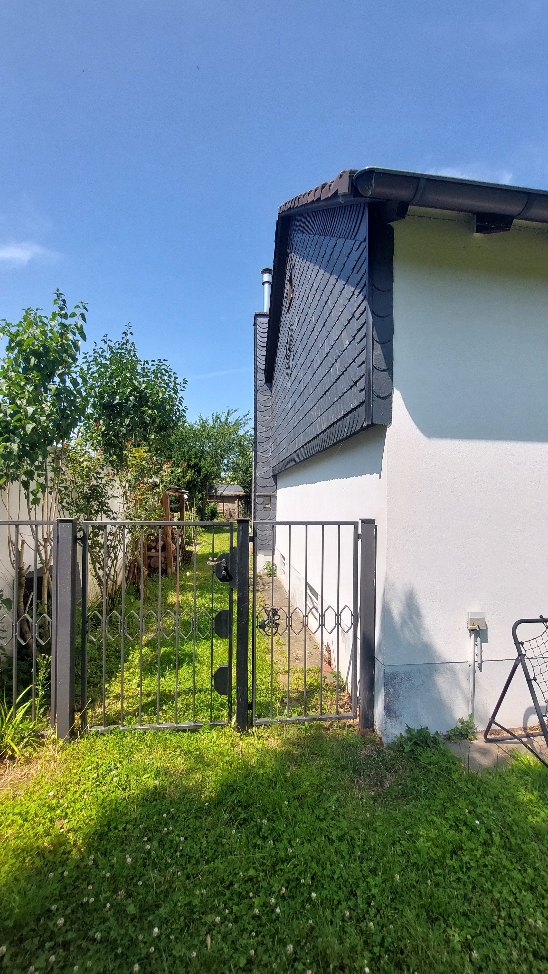 Die Massivbauweise und das Satteldach verleihen dem Gebäude eine solide und zeitlose Optik.